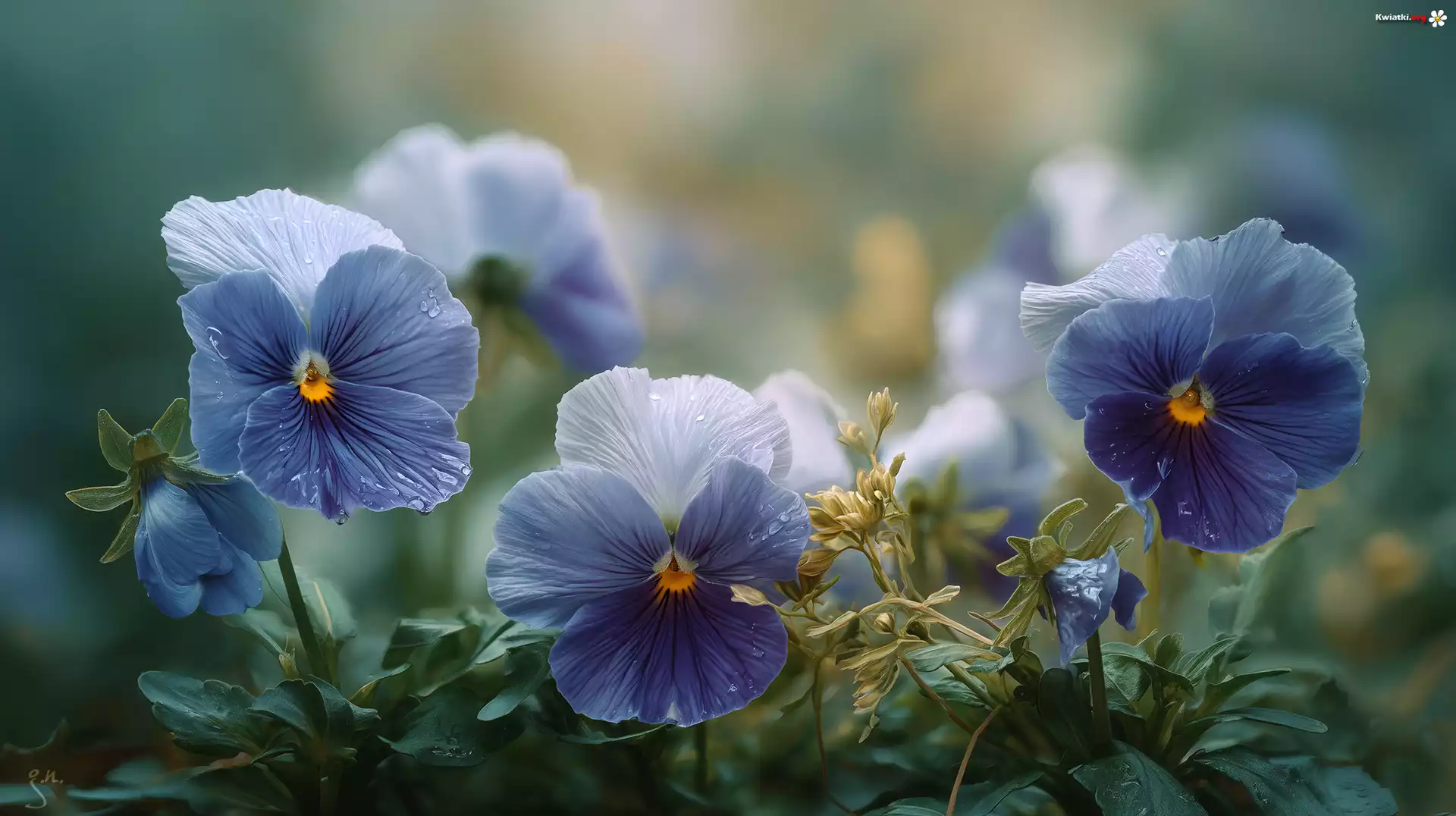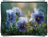 Niebieskie, Bratki, Kwiaty, Pąki, Grafika AI - Zdjęcia