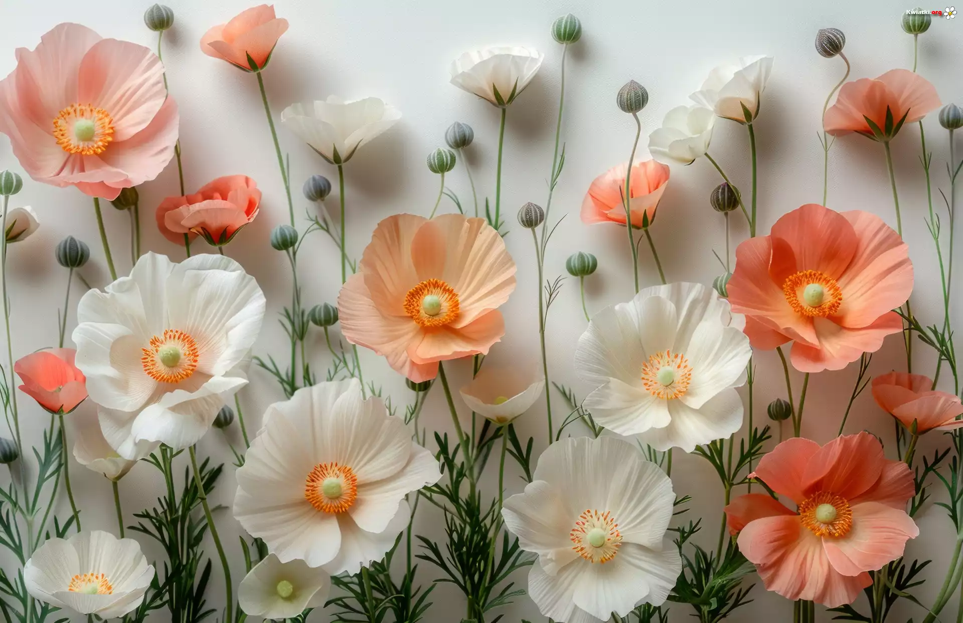 Białe, Pomarańczowe, Kwiaty, Pąki - Zdjęcia