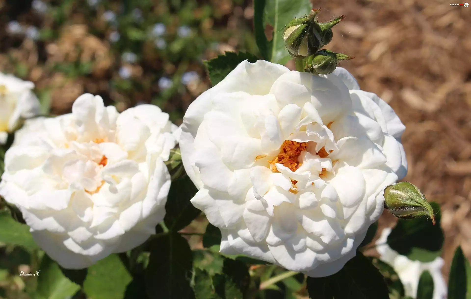 Kwiat Dwie, Róże, Białe, Pąki, Liście