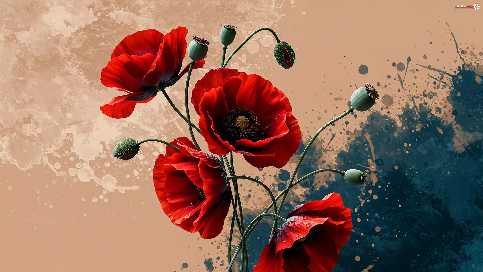 Kwiaty, Maki, Czerwone, Pąki, Tło, Grafika - Zdjęcia