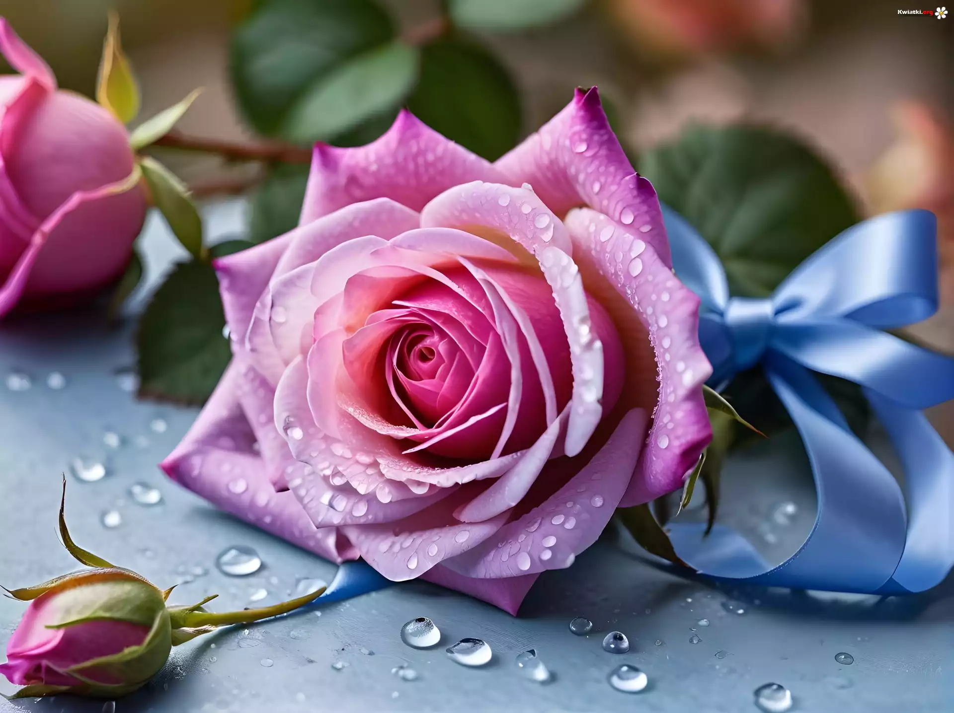 Róża, Różowy, Kwiat, Pąki, Krople, Grafika - Zdjęcia