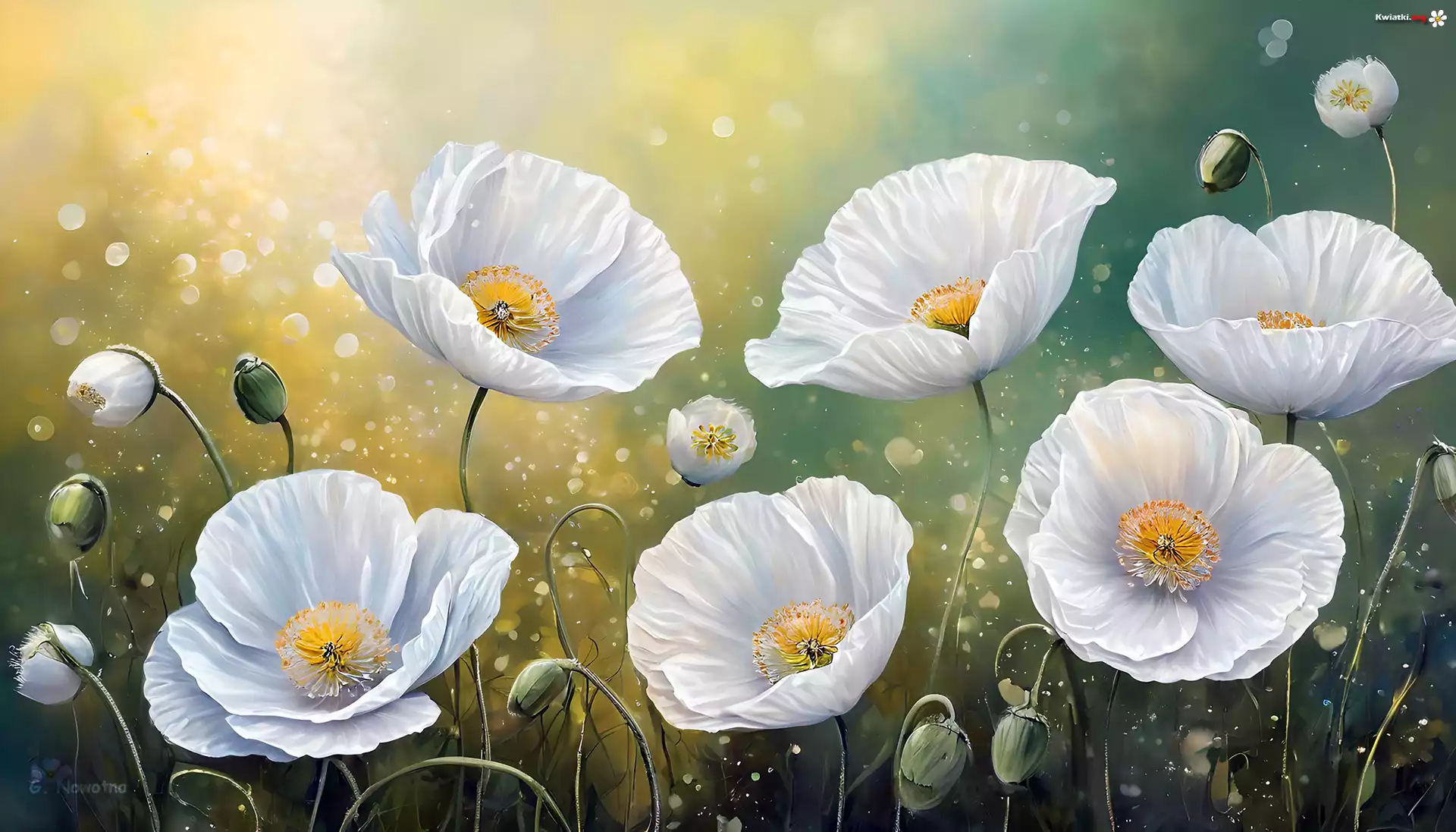 Białe, Rozwinięte, Maki, Pąki, Kwiaty, Grafika - Zdjęcia
