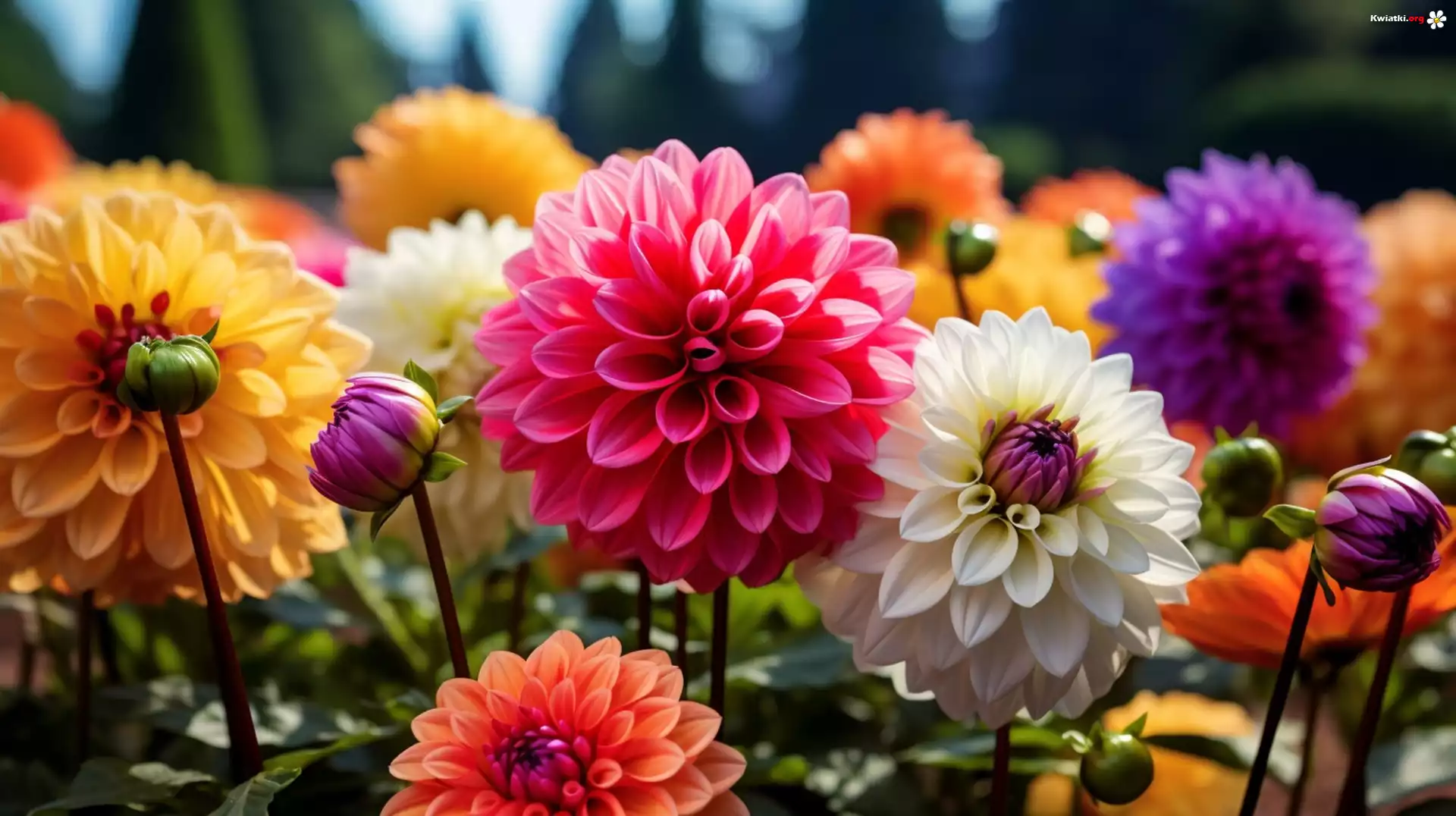 Kwiaty, Kolorowe, Dalie, Pąki - Zdjęcia