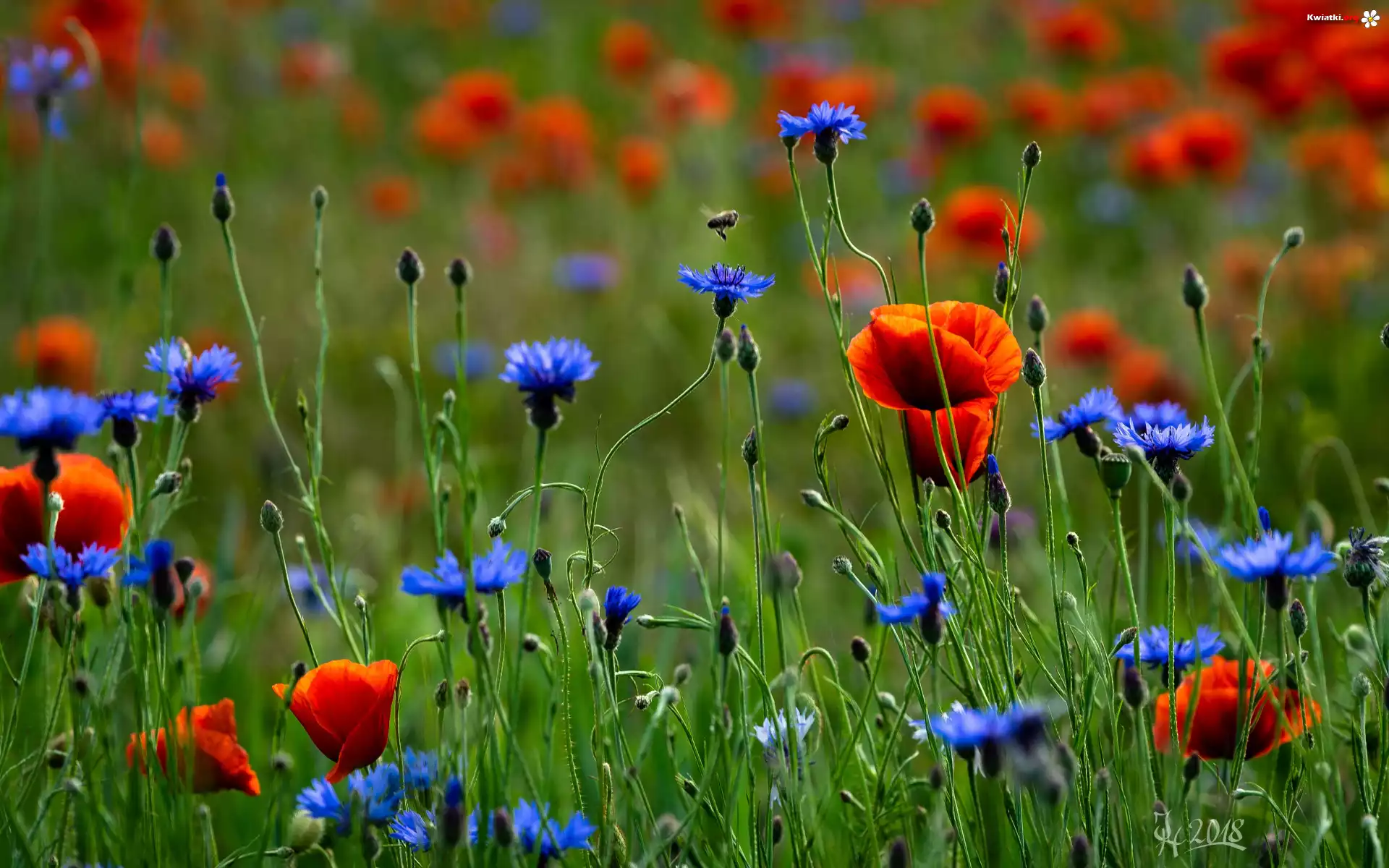 Łąka, Maki, Chabry, Pąki, Bokeh - Zdjęcia