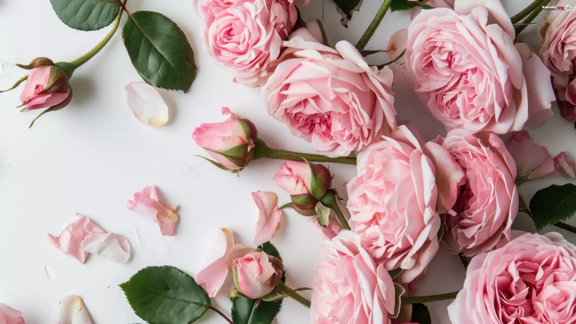 Kwiaty, Różowe, Róże, Pąki, Płatki, Białe tło - Zdjęcia