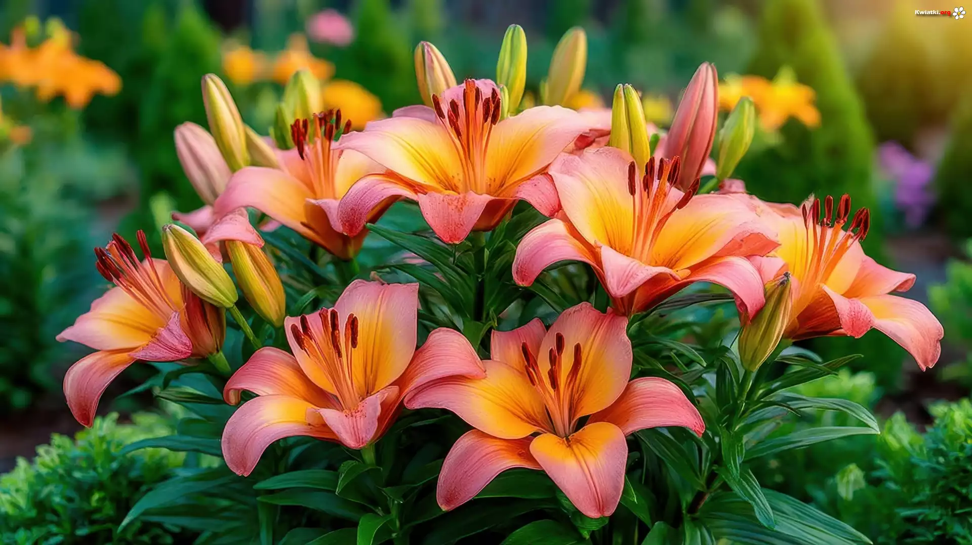 Różowo-pomarańczowe, Lilie, Pąki - Zdjęcia