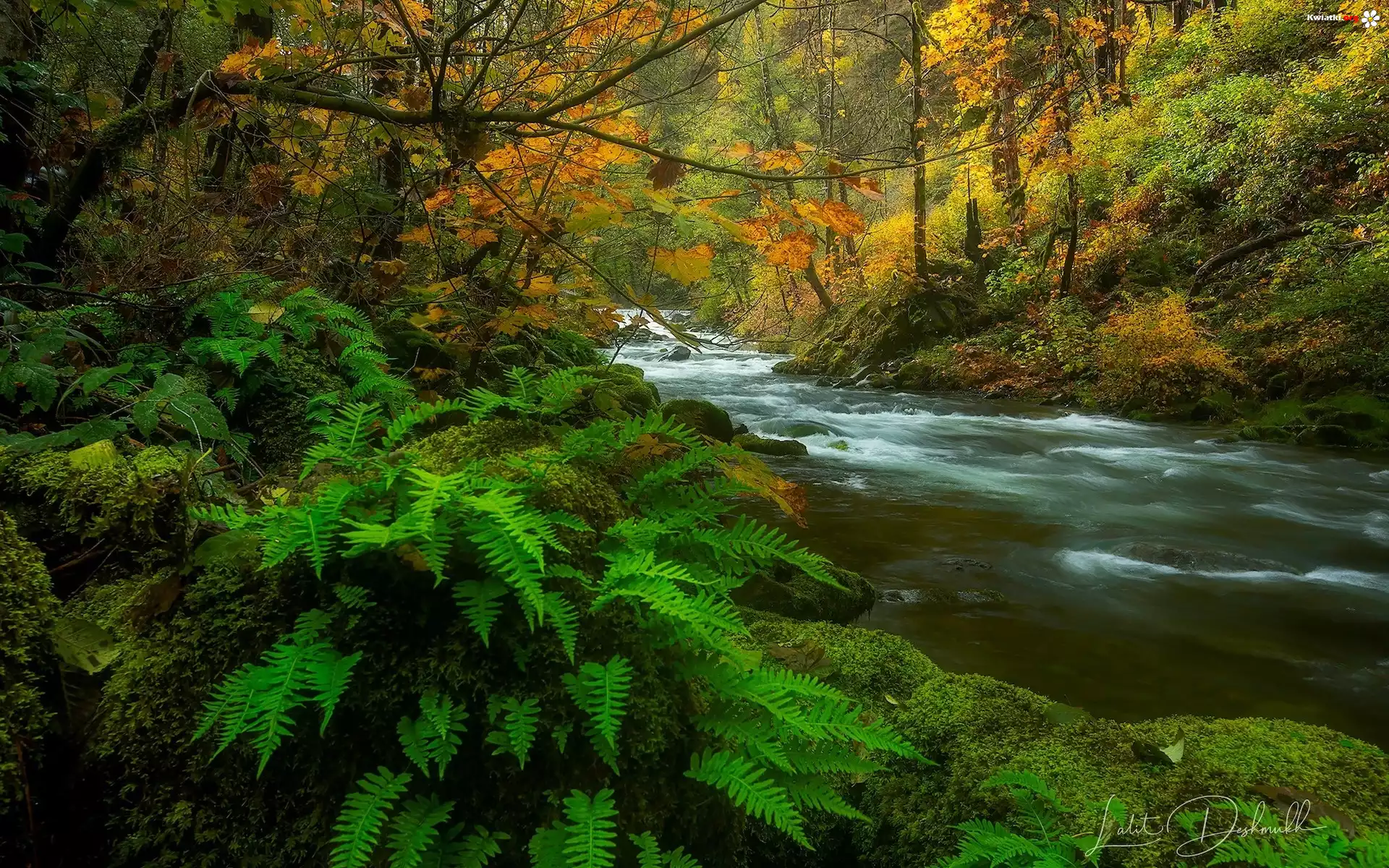 Kwiat Las, Rzeka, Drzewa, Paprocie