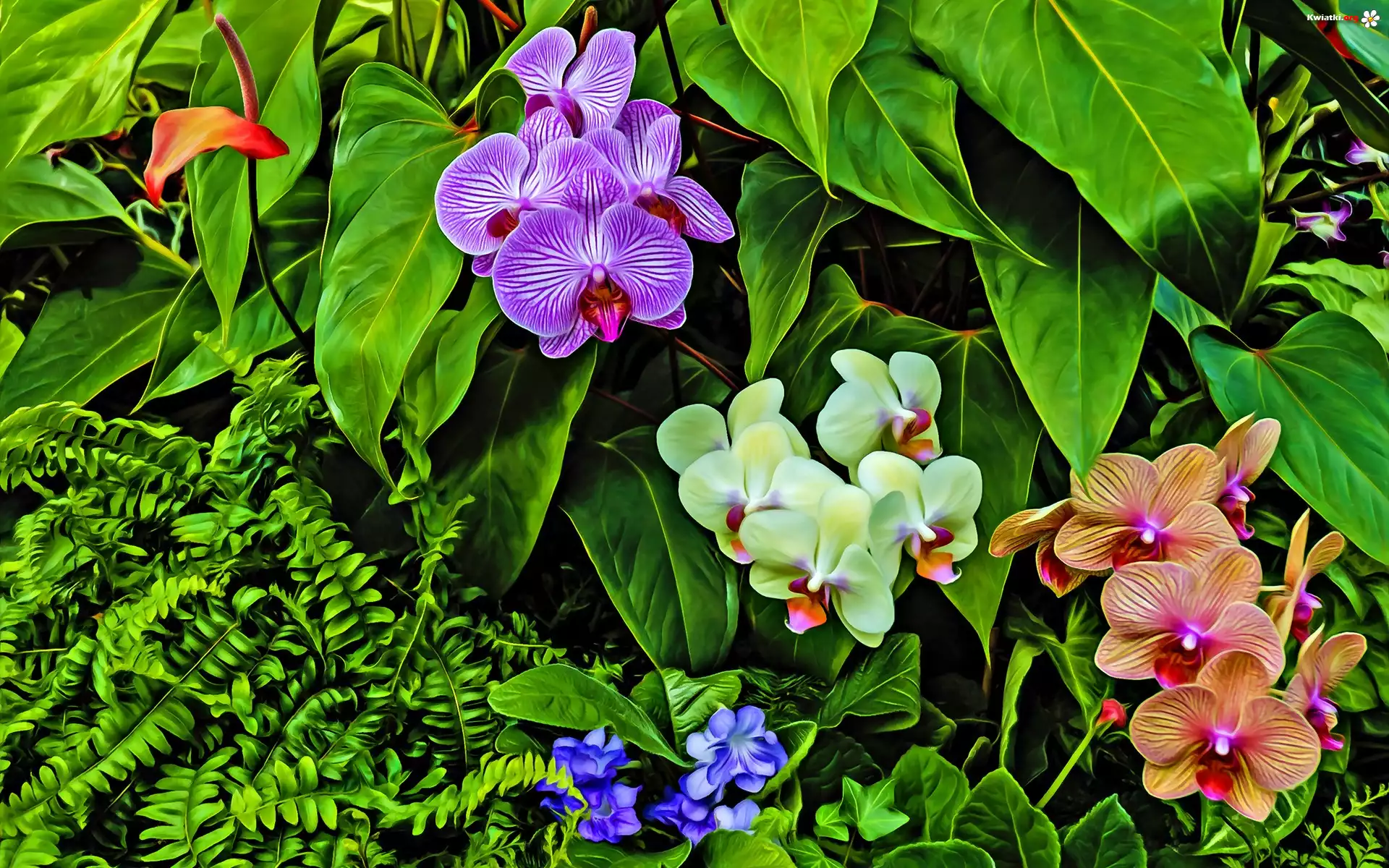 Storczyki, Paprocie, Grafika - Zdjęcia