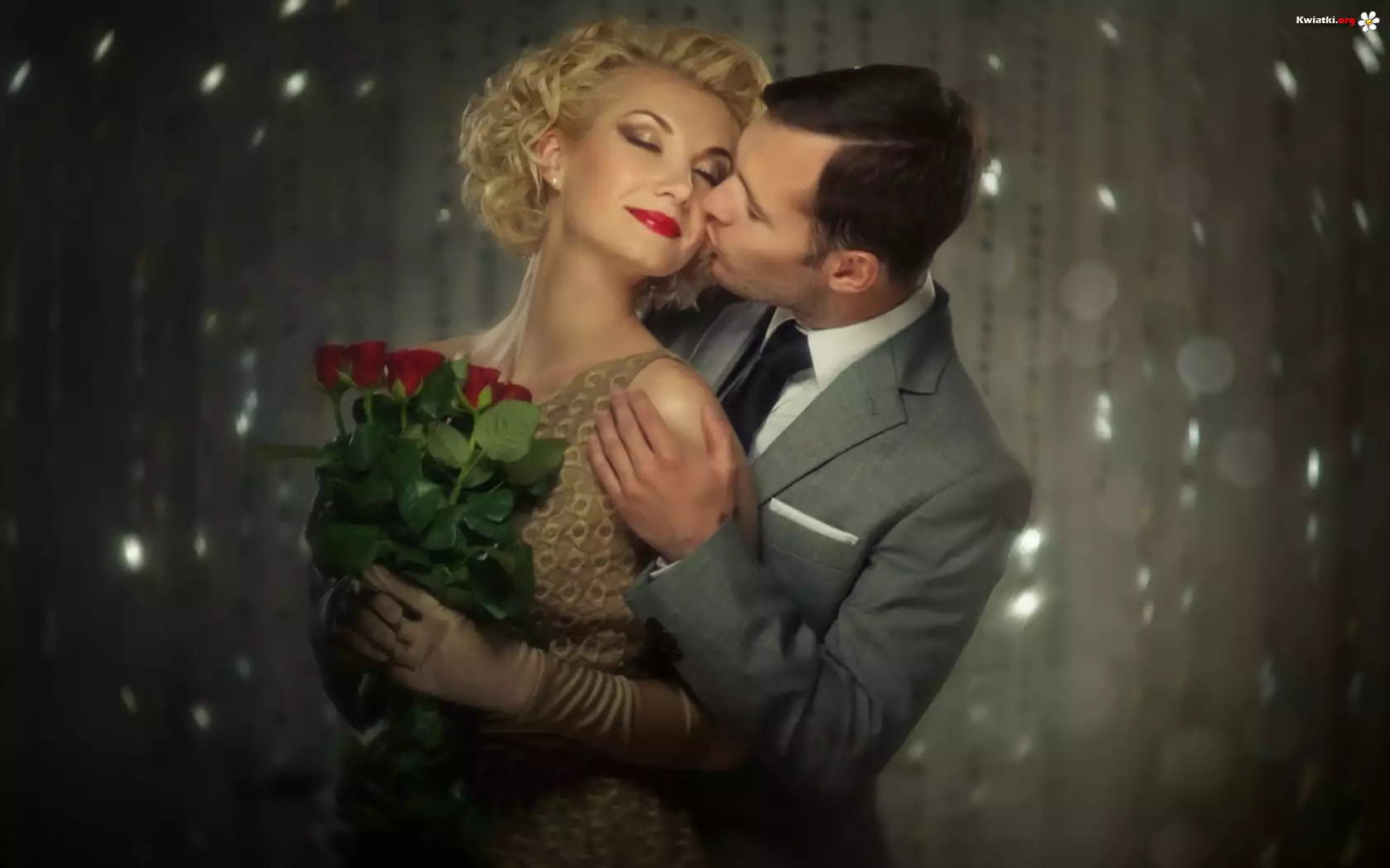 Para, Romantycznie, Bukiet, Róż - Zdjęcia
