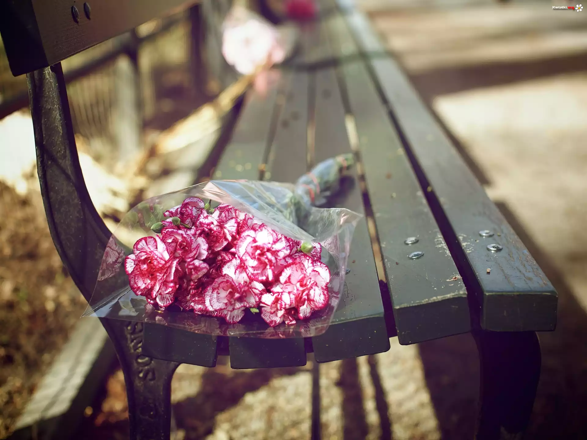 Park, Ławka, Bukiet, Goździki - Zdjęcia