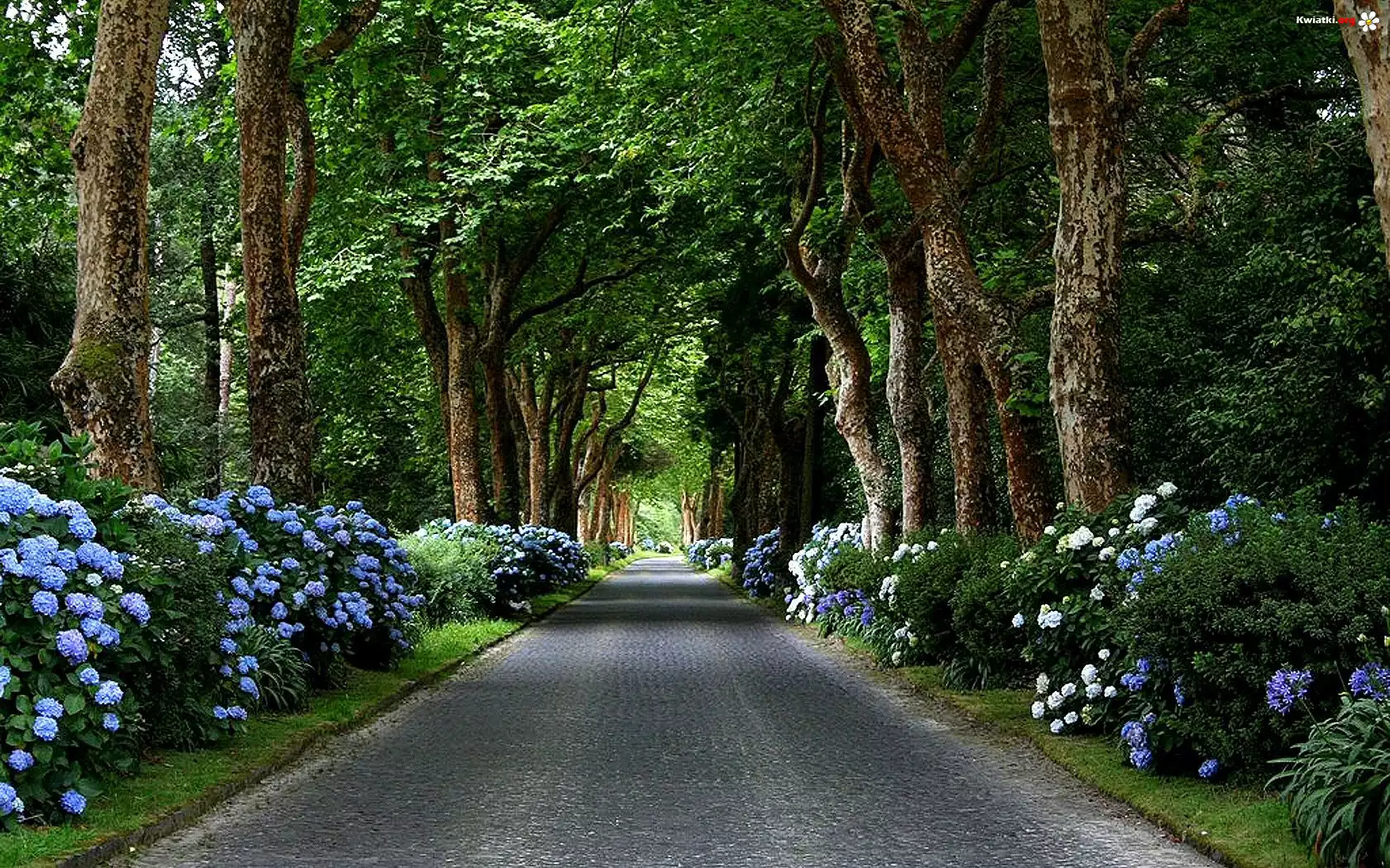 Kwiat Park, Niebieskie, Kwiaty, Drzewa, Droga