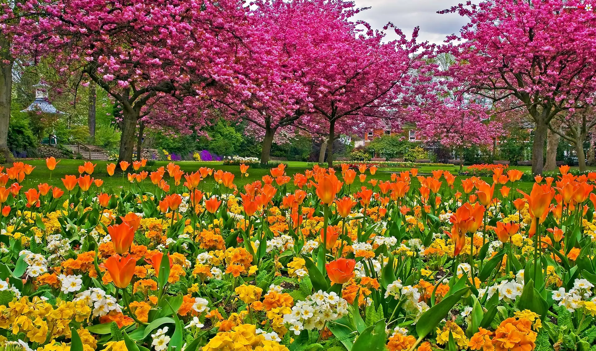 Kwiat Park, Tulipany, Kwitnące, Drzewa, Wiosna