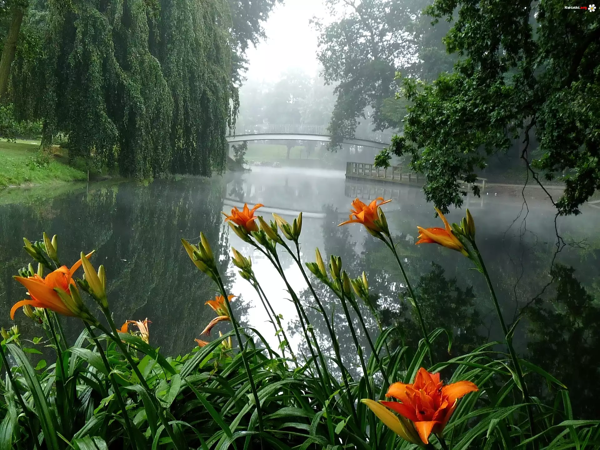 Park, Jeziorko, Kwiaty, Drzewa - Zdjęcia