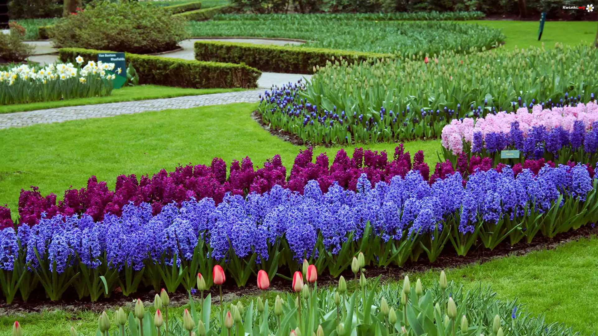 Park, Ogród, Kolorowe, Hiacynty, Kwiaty, Trawniki - Zdjęcia