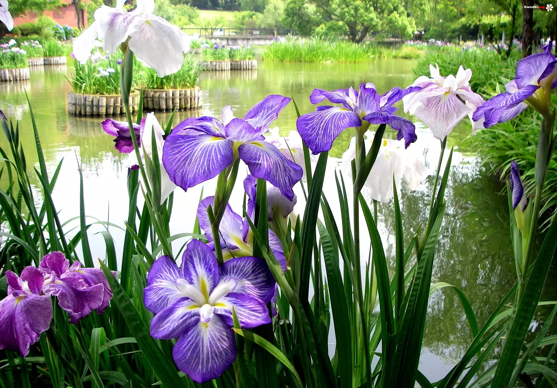 Kwiat Park, Staw, Niebieskie, Irysy