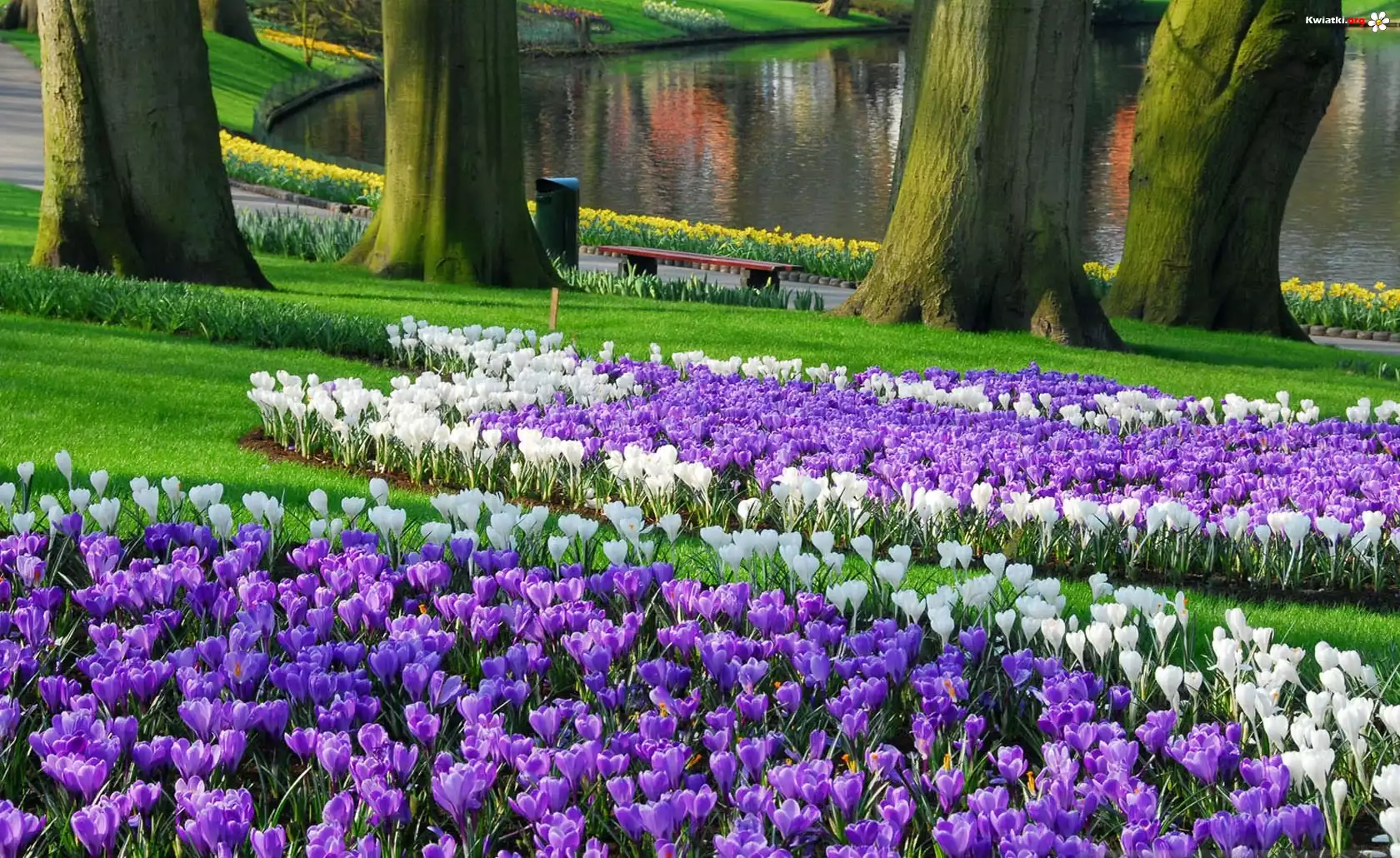 Park, Ławeczka, Jeziorko, Krokusy - Zdjęcia