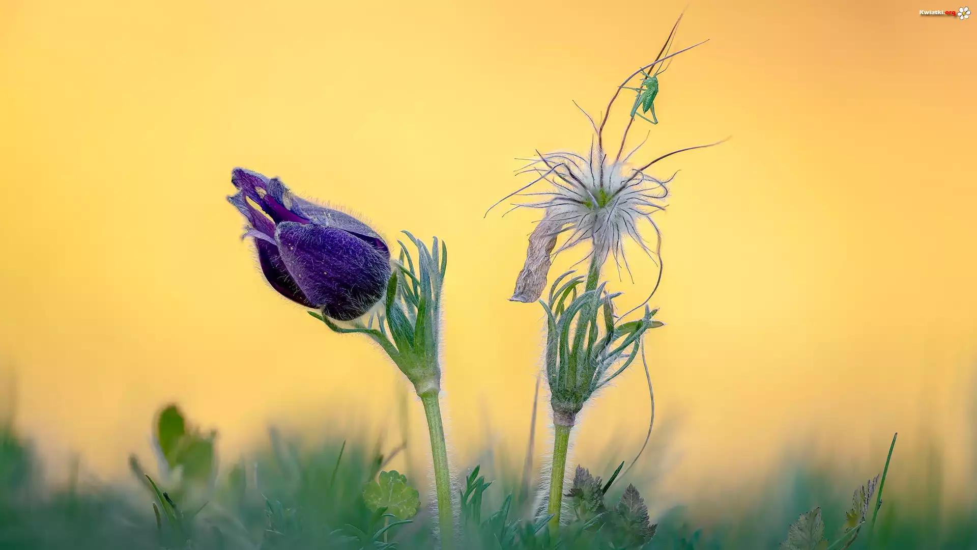 Kwiaty, Dwie, Sasanki, Pasikonik - Zdjęcia