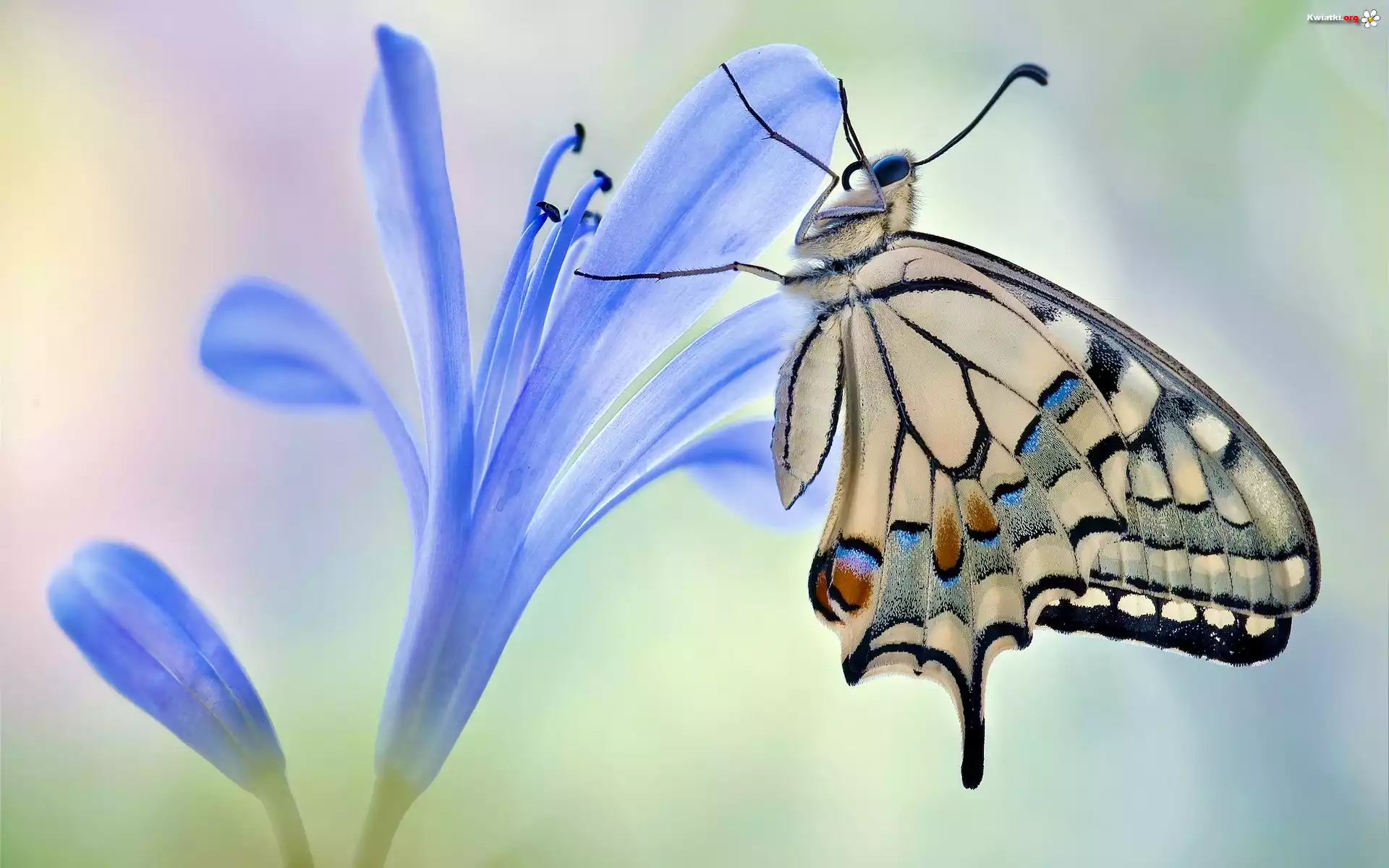 Motyl, Paź królowej, Kwiat, Niebieski - Zdjęcia