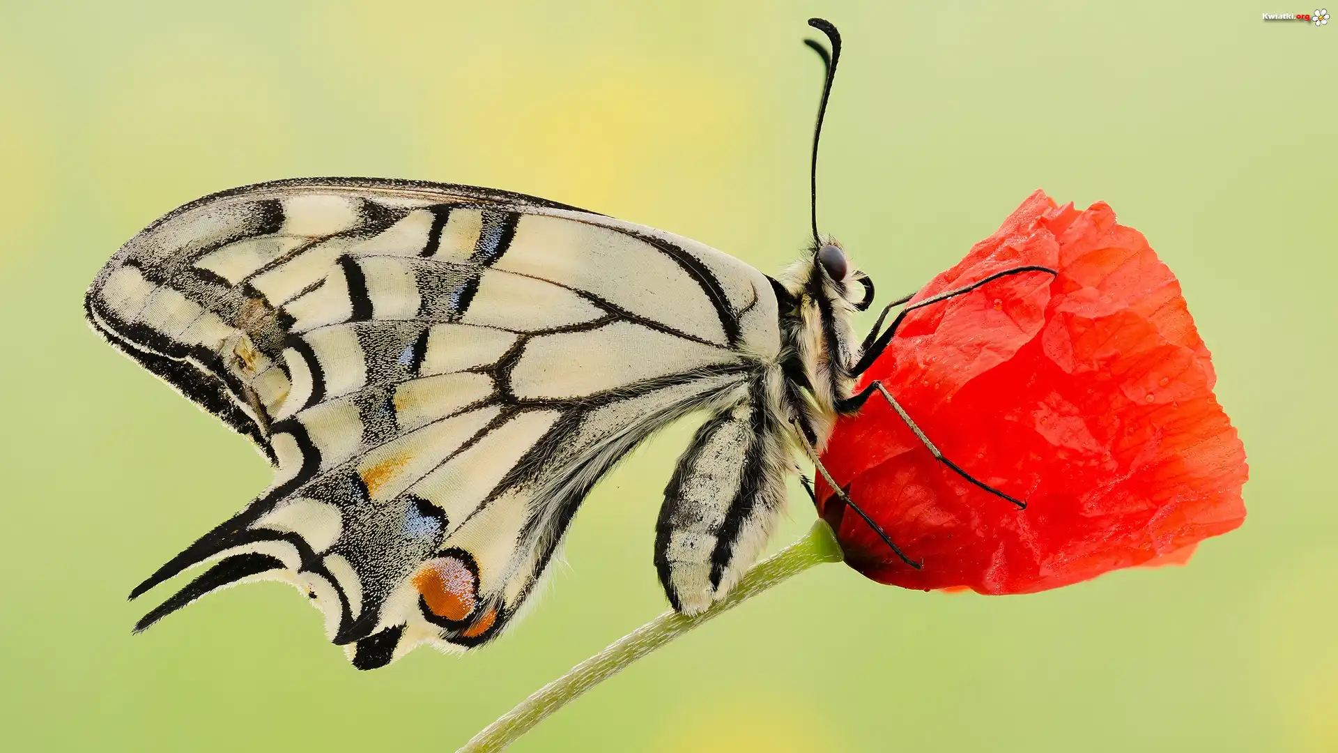 Motyl, Paź królowej, Kwiat, Czerwony, Mak, Makro - Zdjęcia