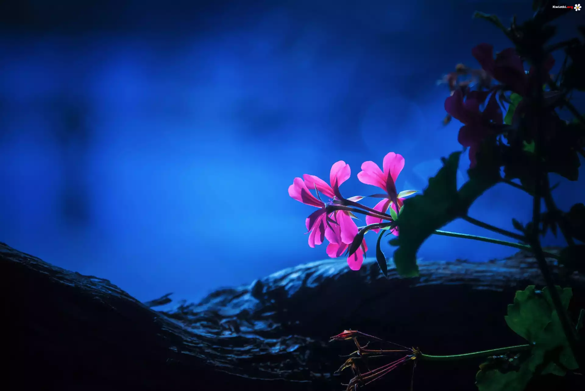 Kwiat Pelargonia, Kwiaty, Światło, Noc