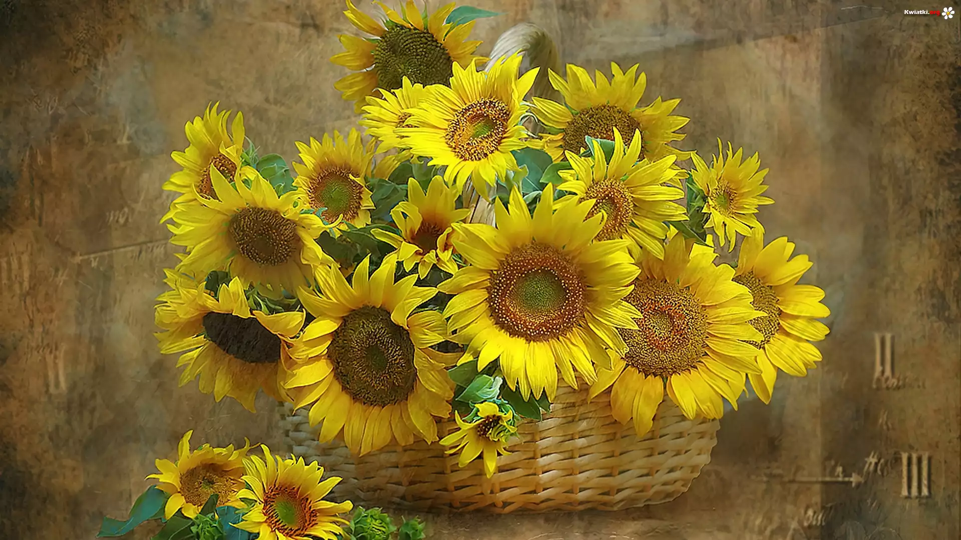 Kosz, Pełen, Słoneczników - Zdjęcia