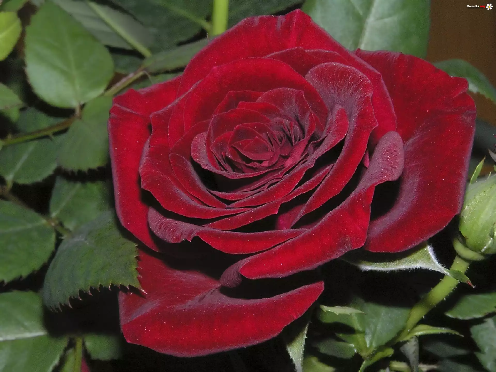 Piękna, Pąsowa, Róża, Zielone, Listki - Zdjęcia