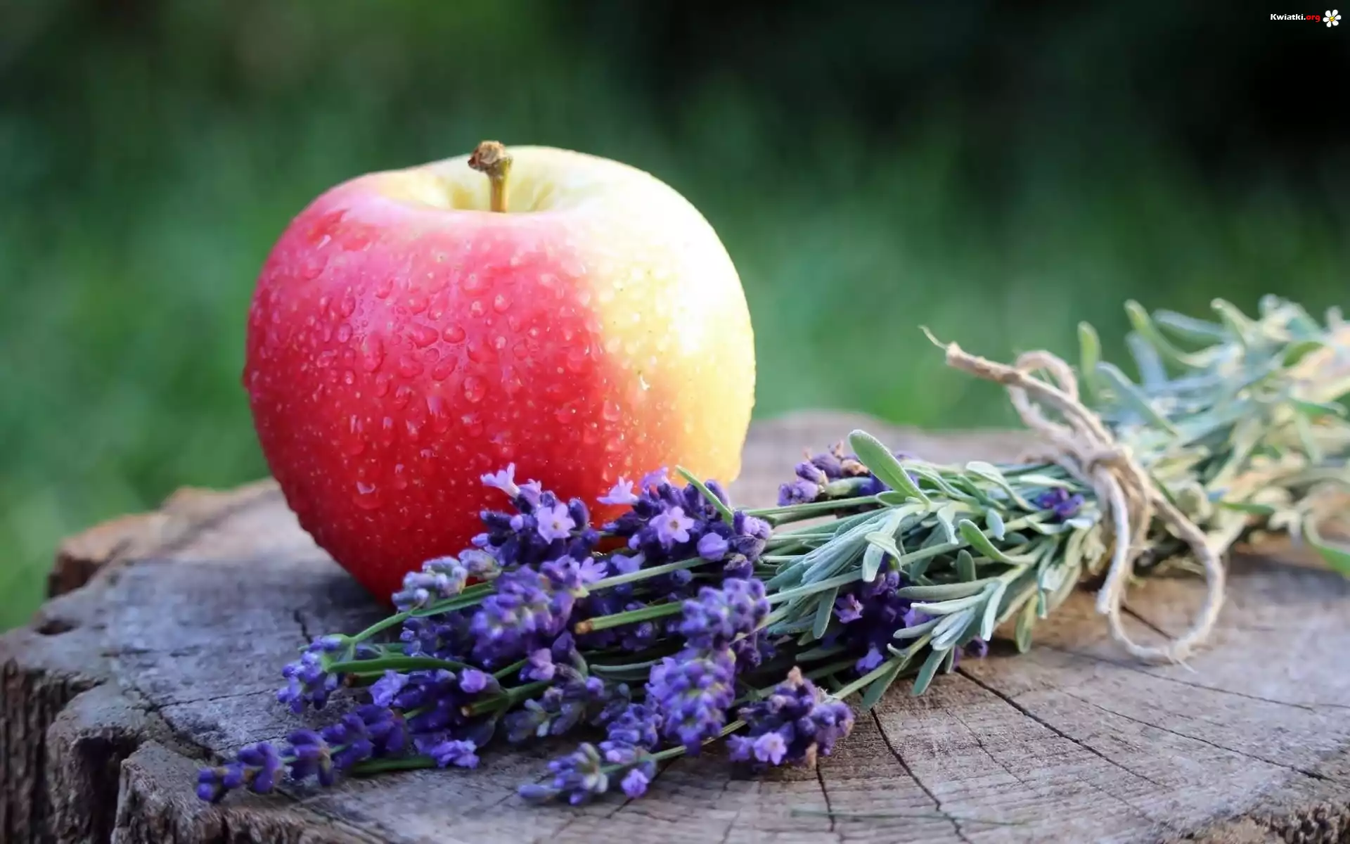 Pień, Jabłko, Krople, Bukiecik, Lawendy - Zdjęcia
