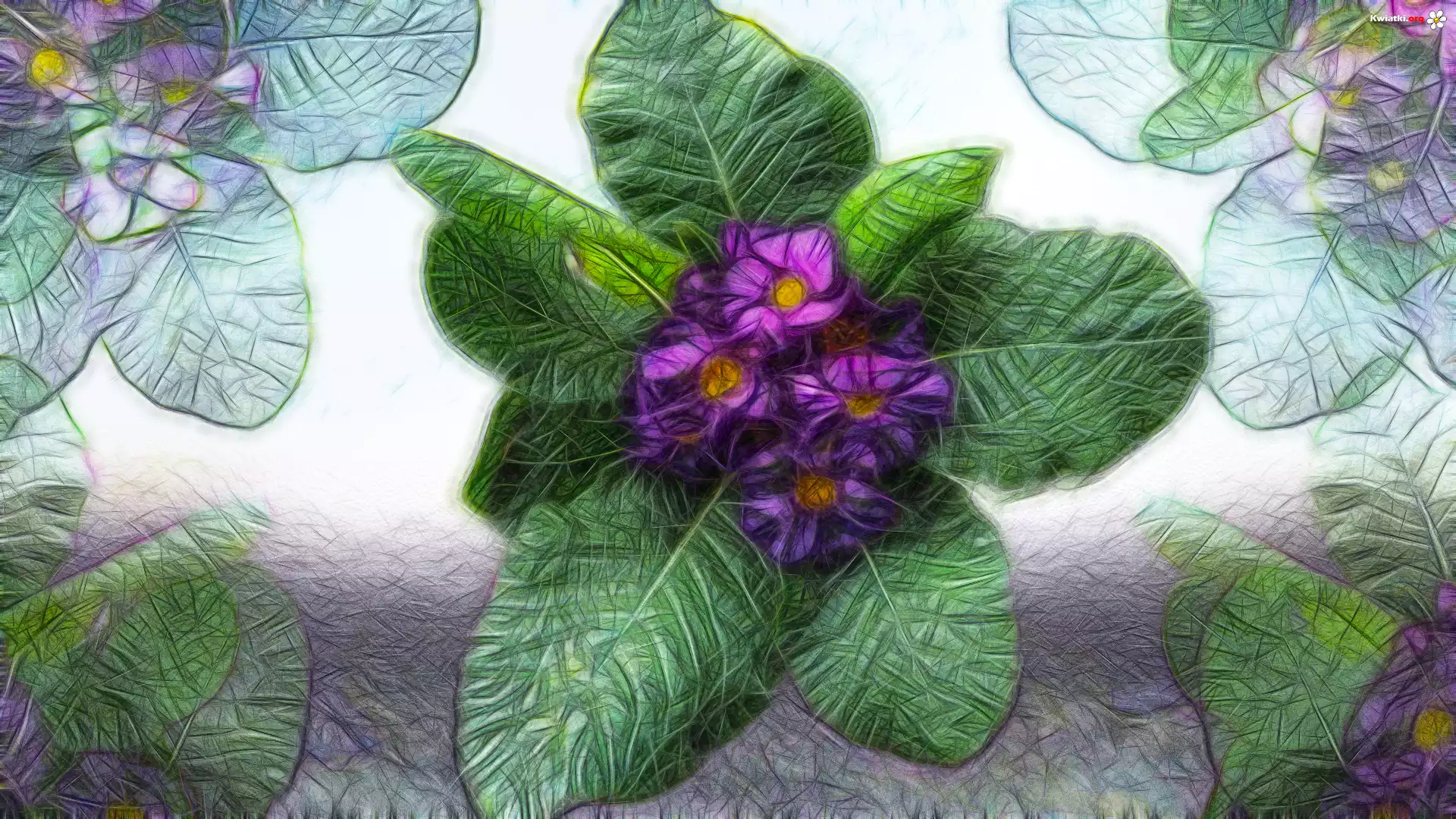 Kwiaty, Pierwiosnki, Fractalius - Zdjęcia