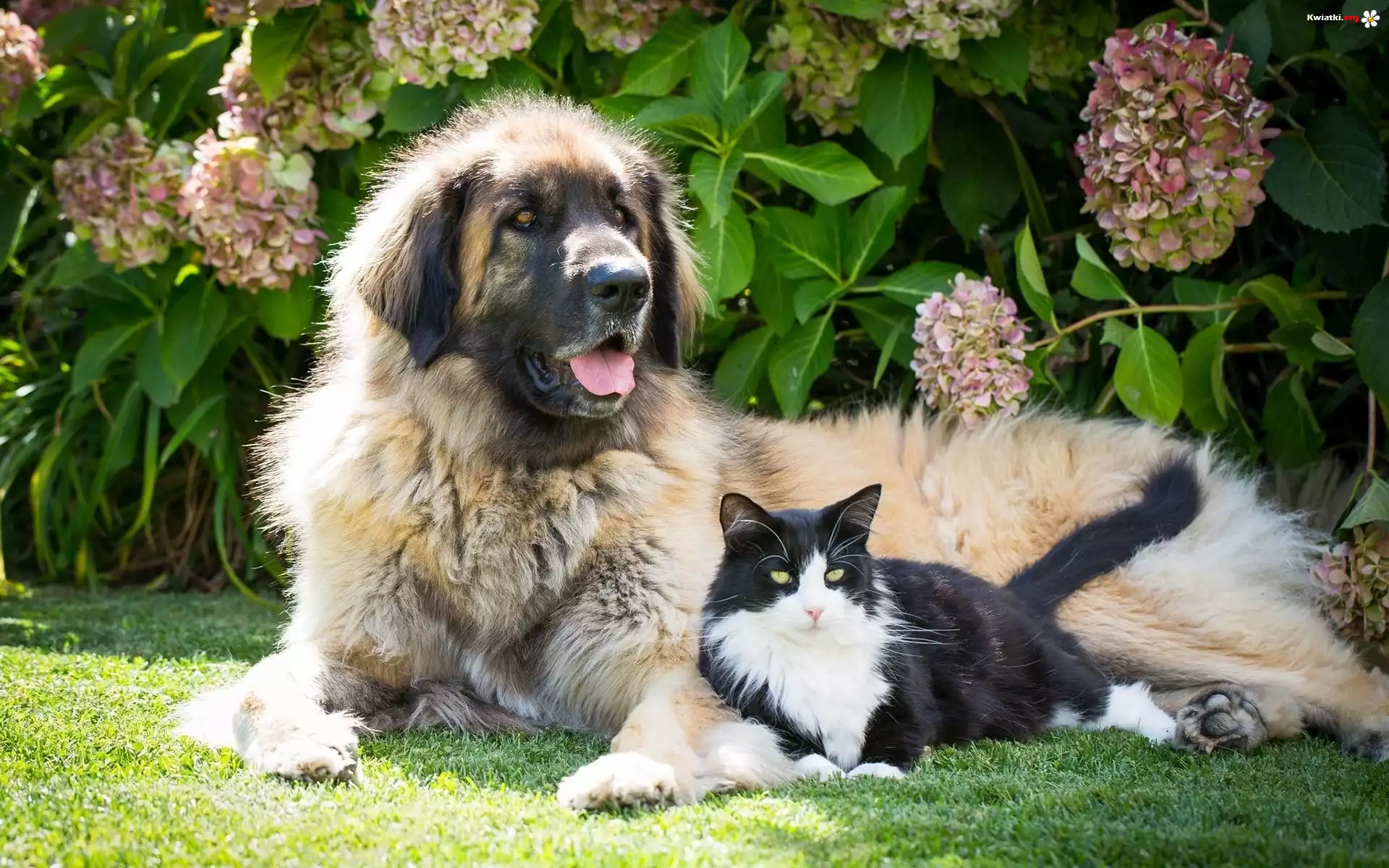 Pies, Kot, Kwiaty, Hortensja - Zdjęcia