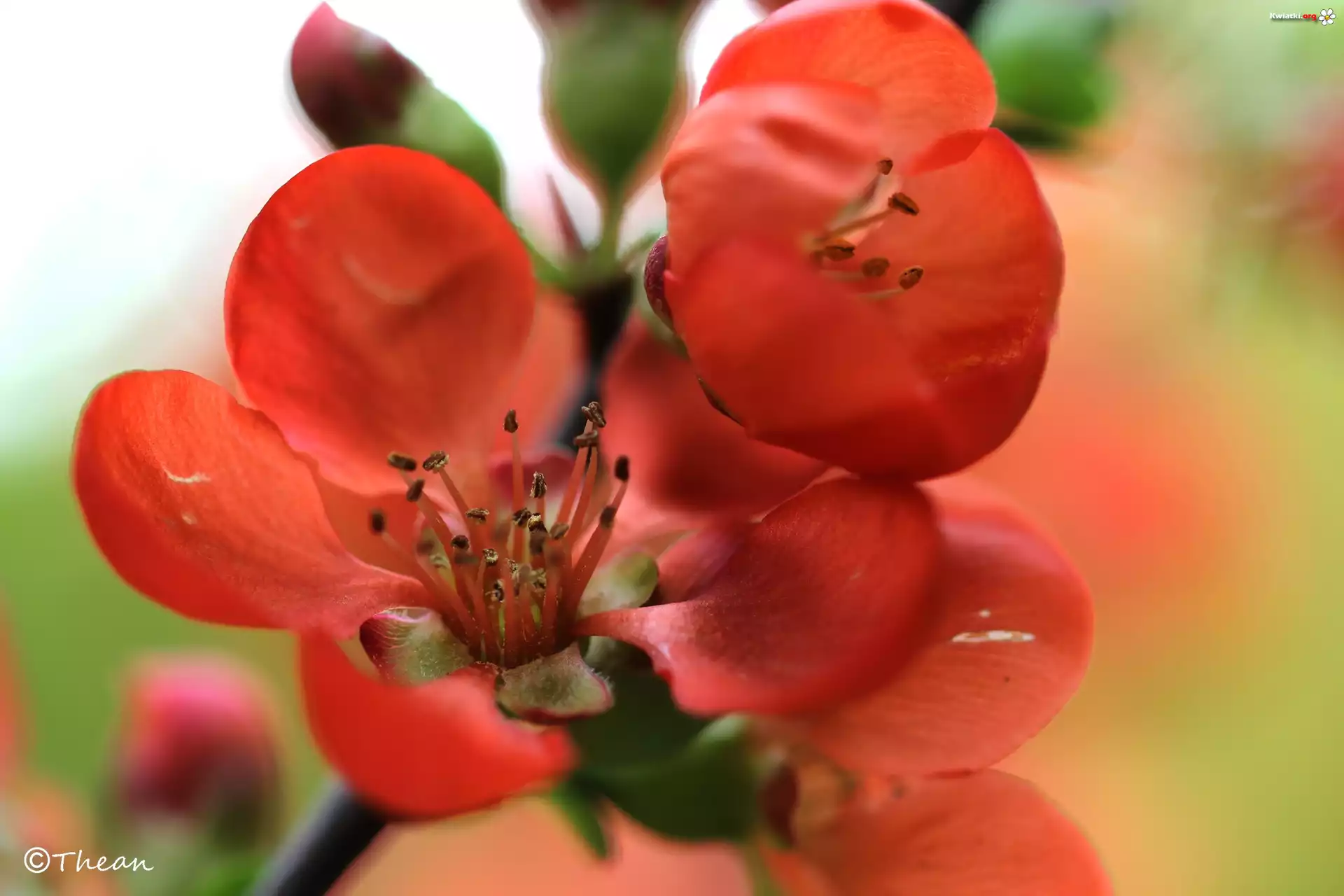 Kwiat Pigwa, Krzew, Czerwone, Kwiaty