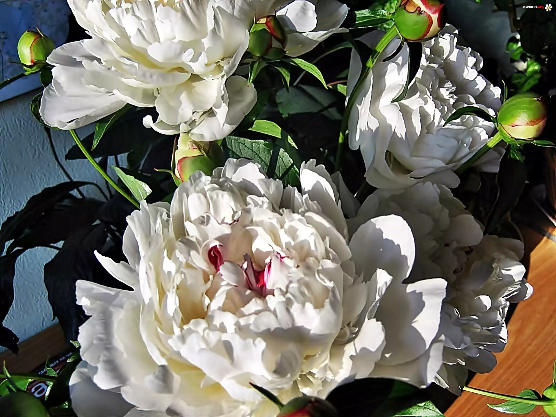 Białe, Piwonie, Rozmycie - Zdjęcia