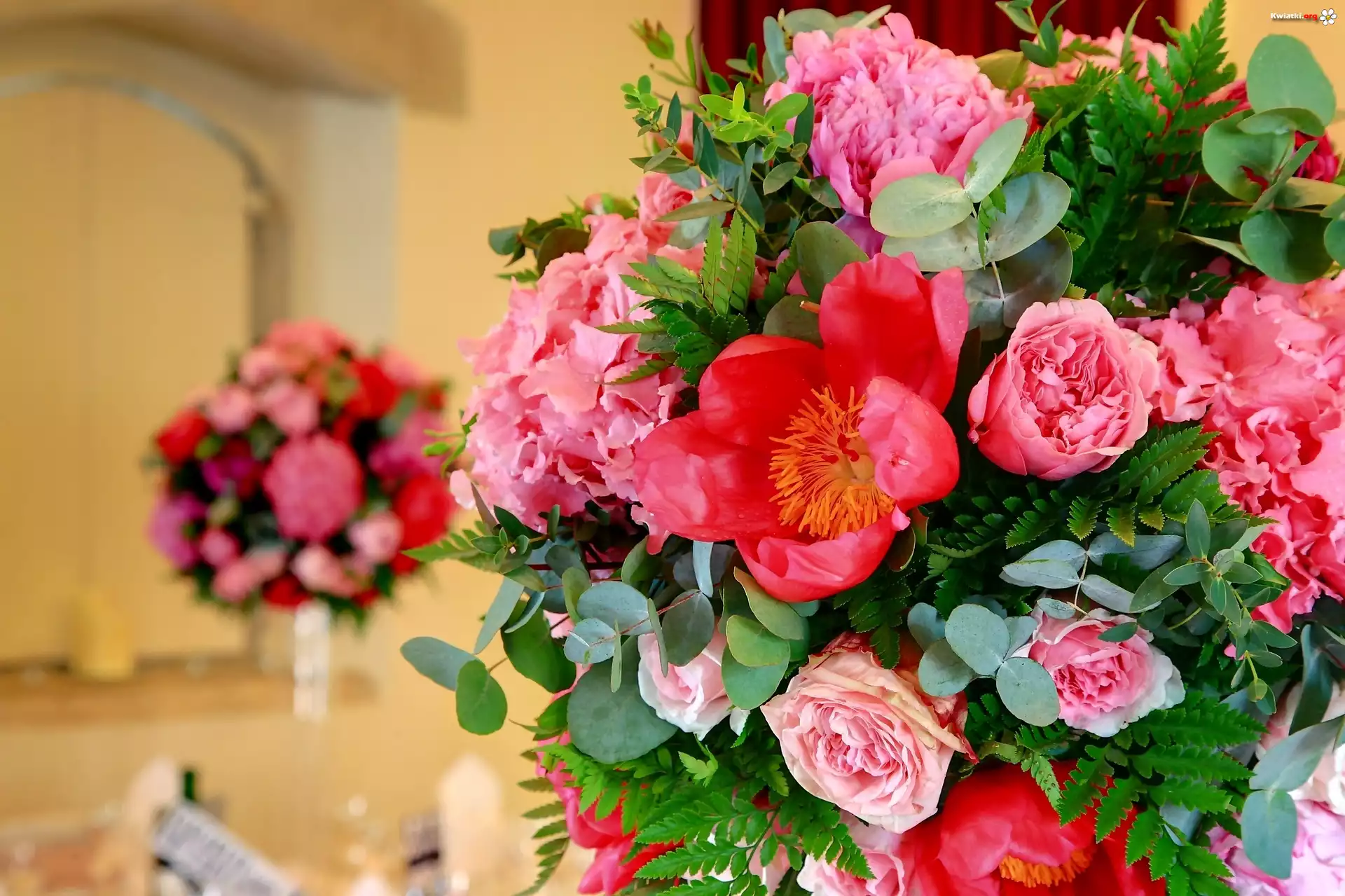 Piwonie, Róże, Bukiet kwiatów - Zdjęcia