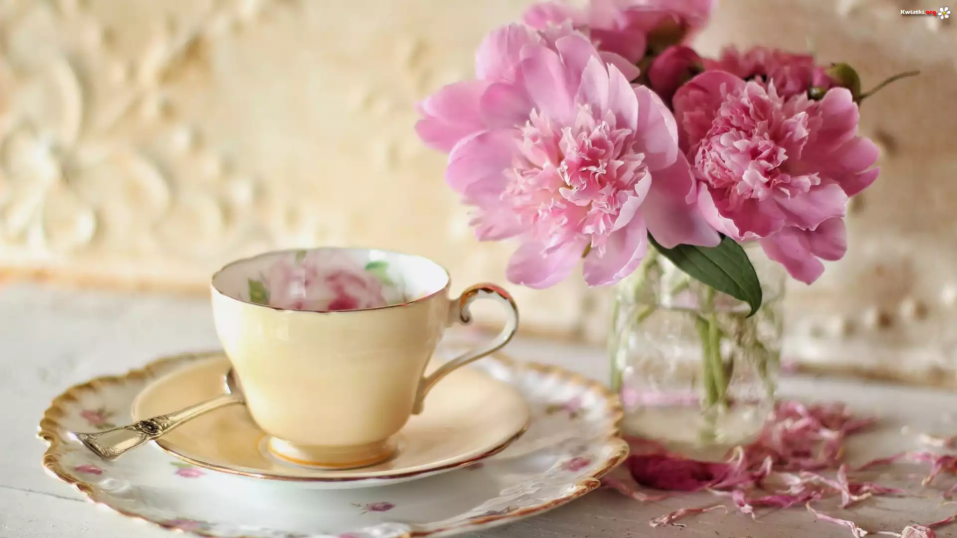 Kompozycja, Piwonie, Filiżanka - Zdjęcia