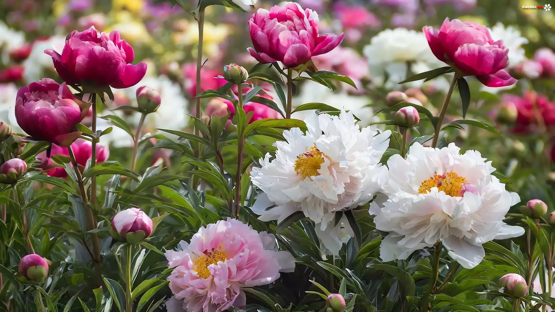 Kwiat Kwiaty, Białe, Czerwone, Piwonie