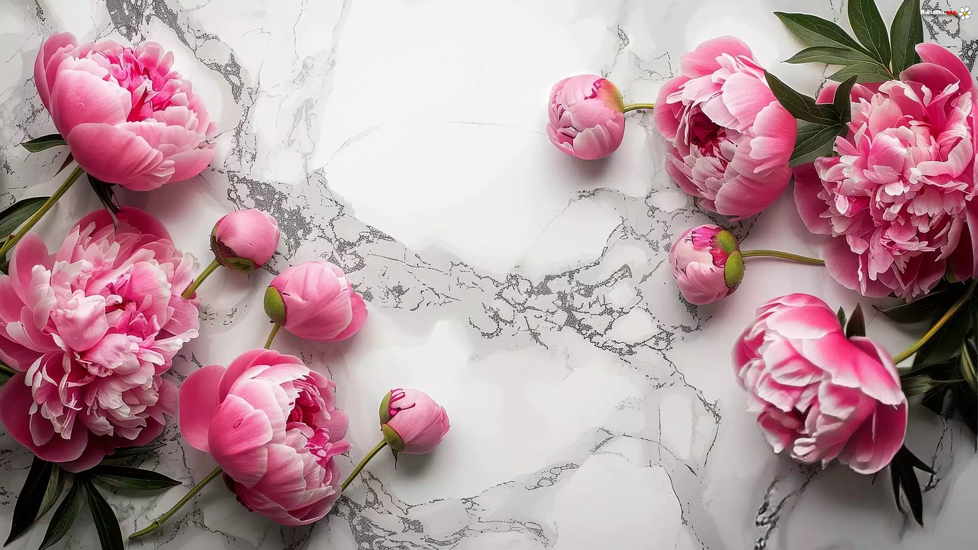 Różowe, Piwonie, Pąki, Marmurkowe, Tło - Zdjęcia