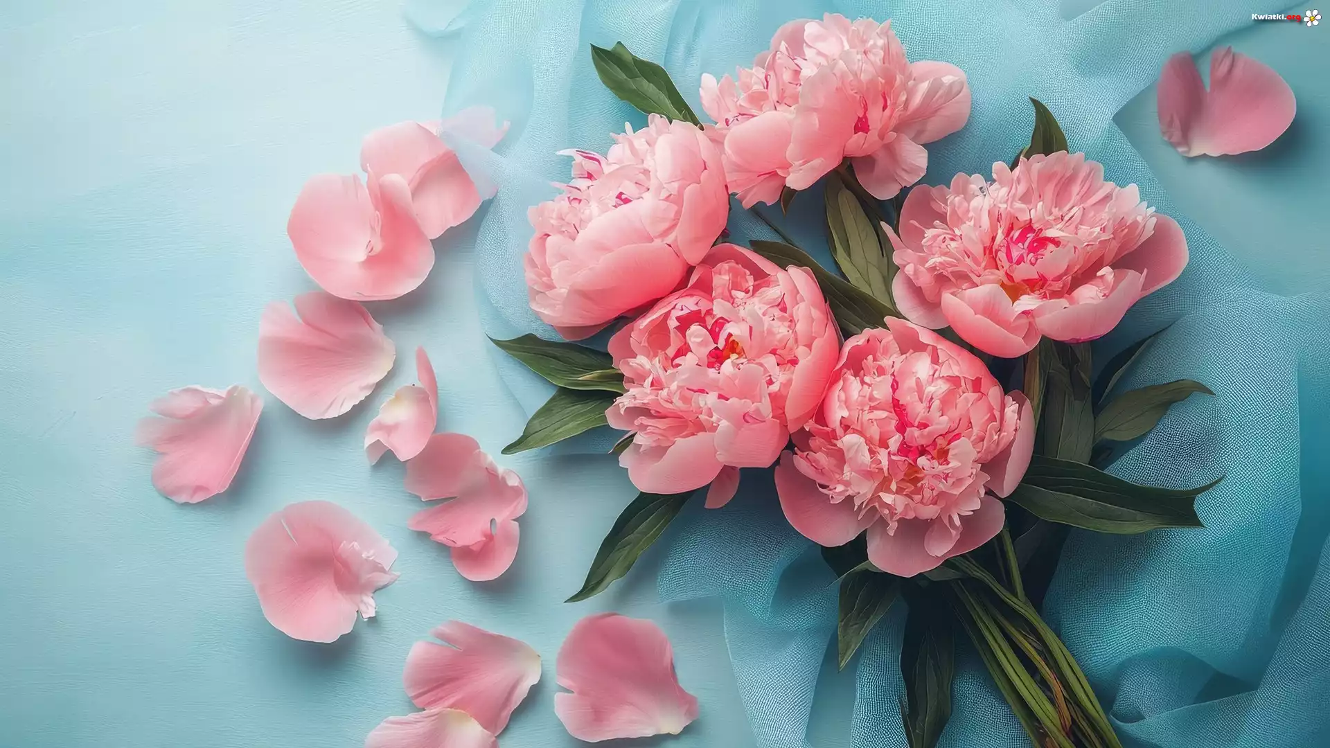Kwiat Bukiet, Piwonie, Płatki, Niebieskie, Tło