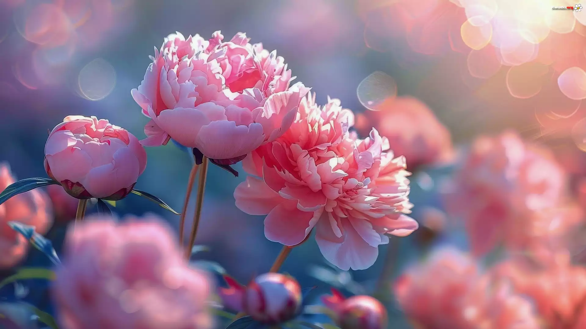 Różowe, Kwiaty, Rozwinięte, Piwonie - Zdjęcia
