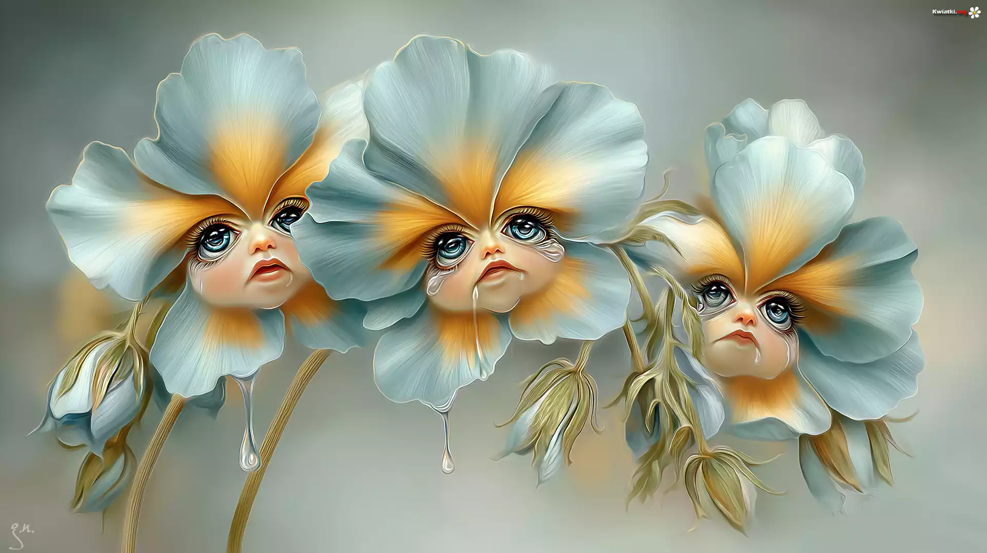 Kwiaty, Płaczące, Twarze, Grafika AI - Zdjęcia
