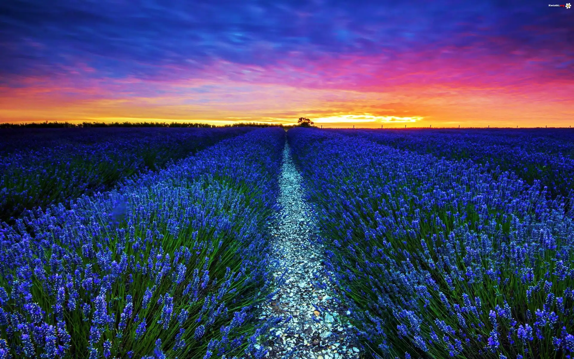 Kwiat Plantacja, Lawendy, Zachód, Słońca