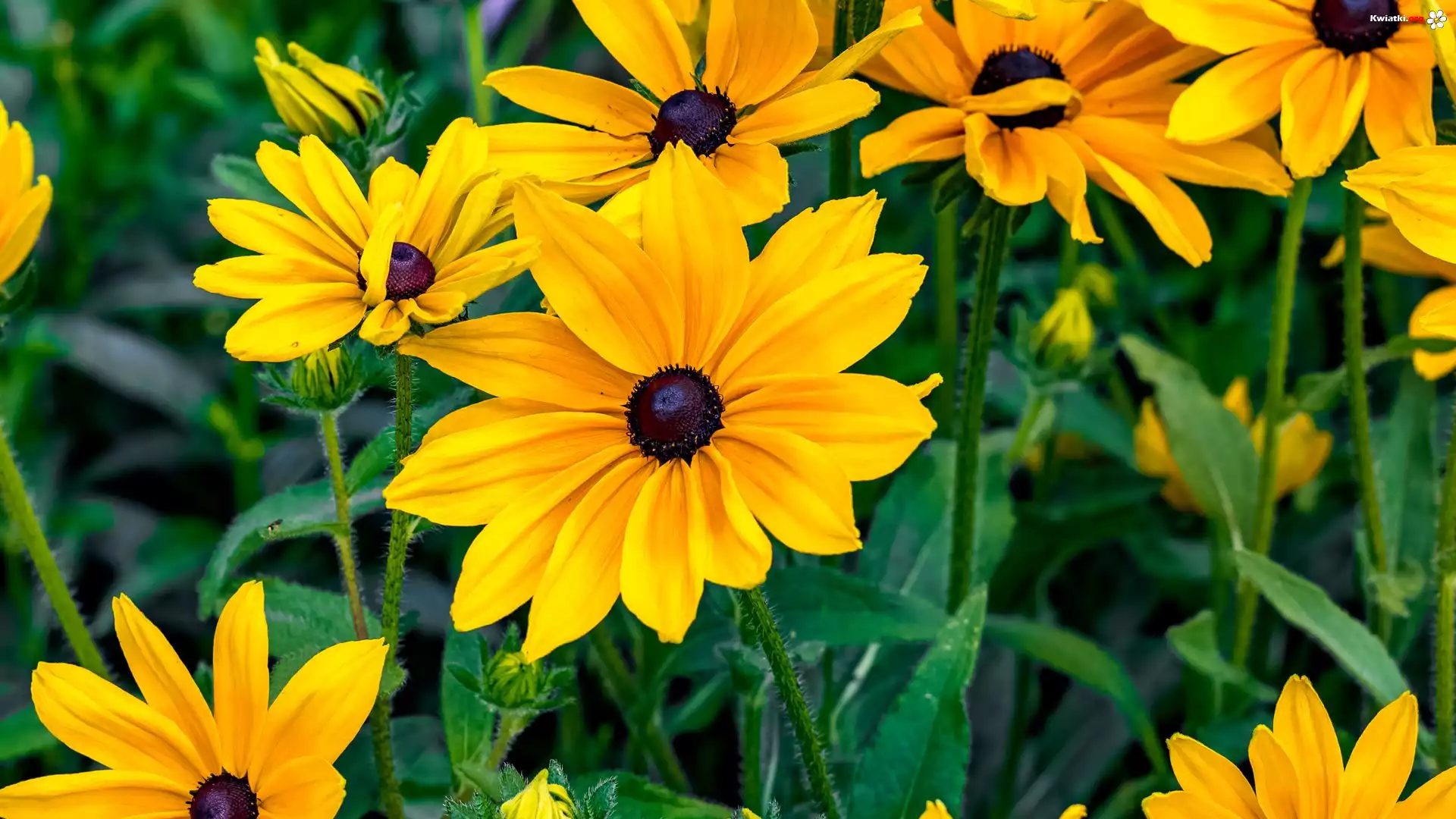 Kwiaty, Żółte, Rudbekia, Płatki, Pąki, Liście - Zdjęcia