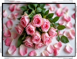 Wiązanka, Różowe, Róże, Płatki - Zdjęcia