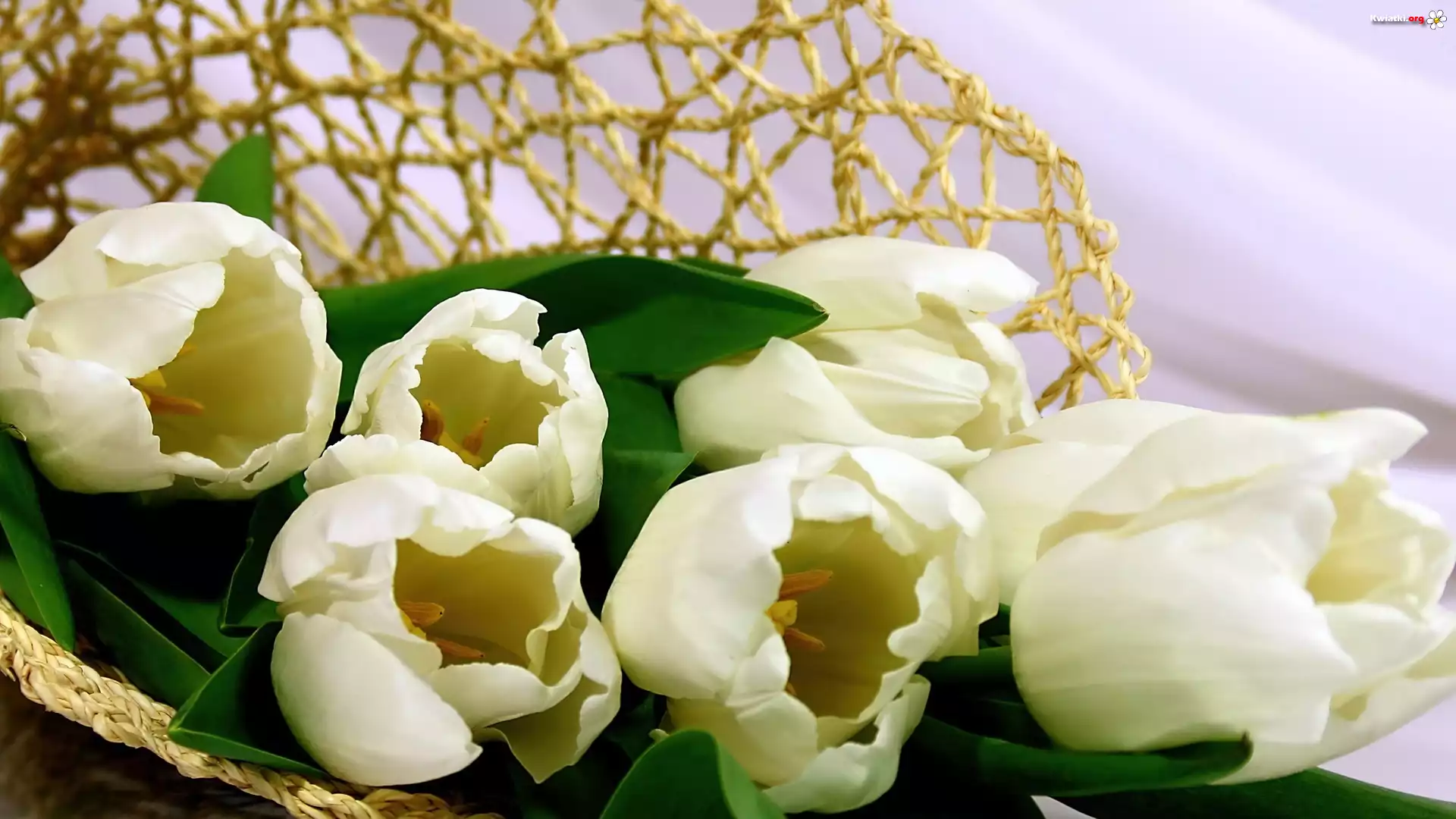 Kwiat Pleciony, Kosz, Białe, Tulipany