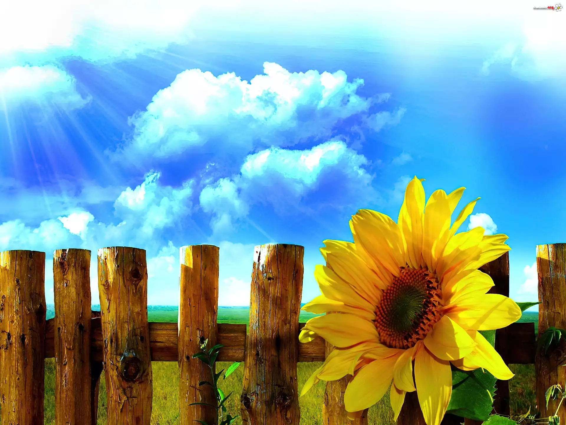 Kwiat Słonecznik, Płot, Niebo