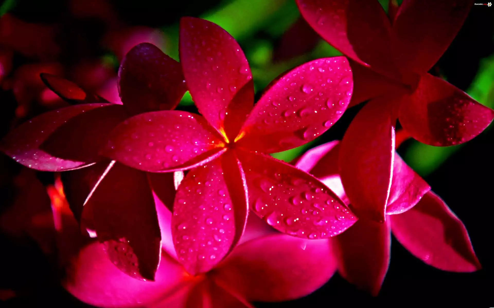 Kwiat Plumeria, Czerwona, Krople, Wody