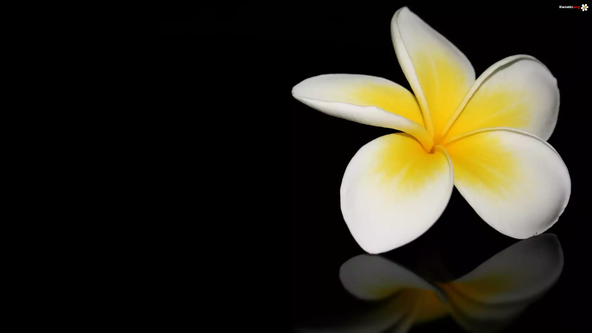 Kwiat, Plumeria, Biało-żółta, Odbicie, Ciemne, Tło - Zdjęcia