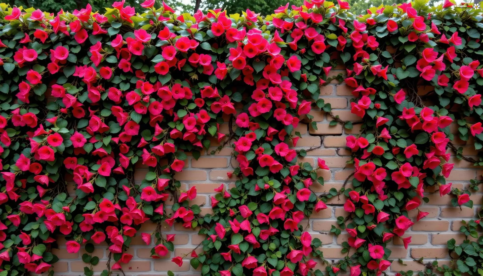 Kwiat Mur, Cegły, Kwiaty, Pnące, Czerwone, Grafika AI