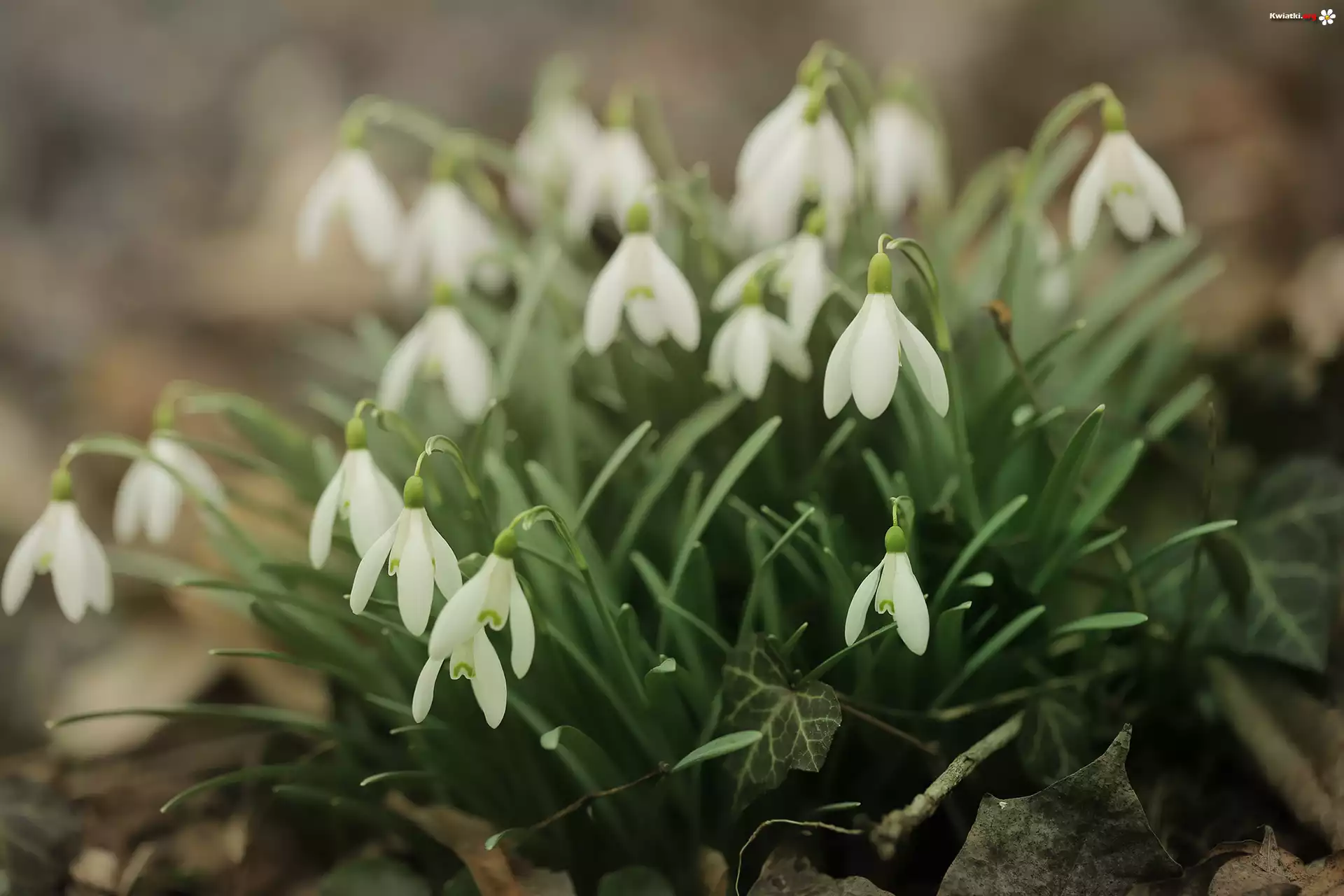 Pochylone, Przebiśniegi, Białe, Kwiaty, Kępka - Zdjęcia