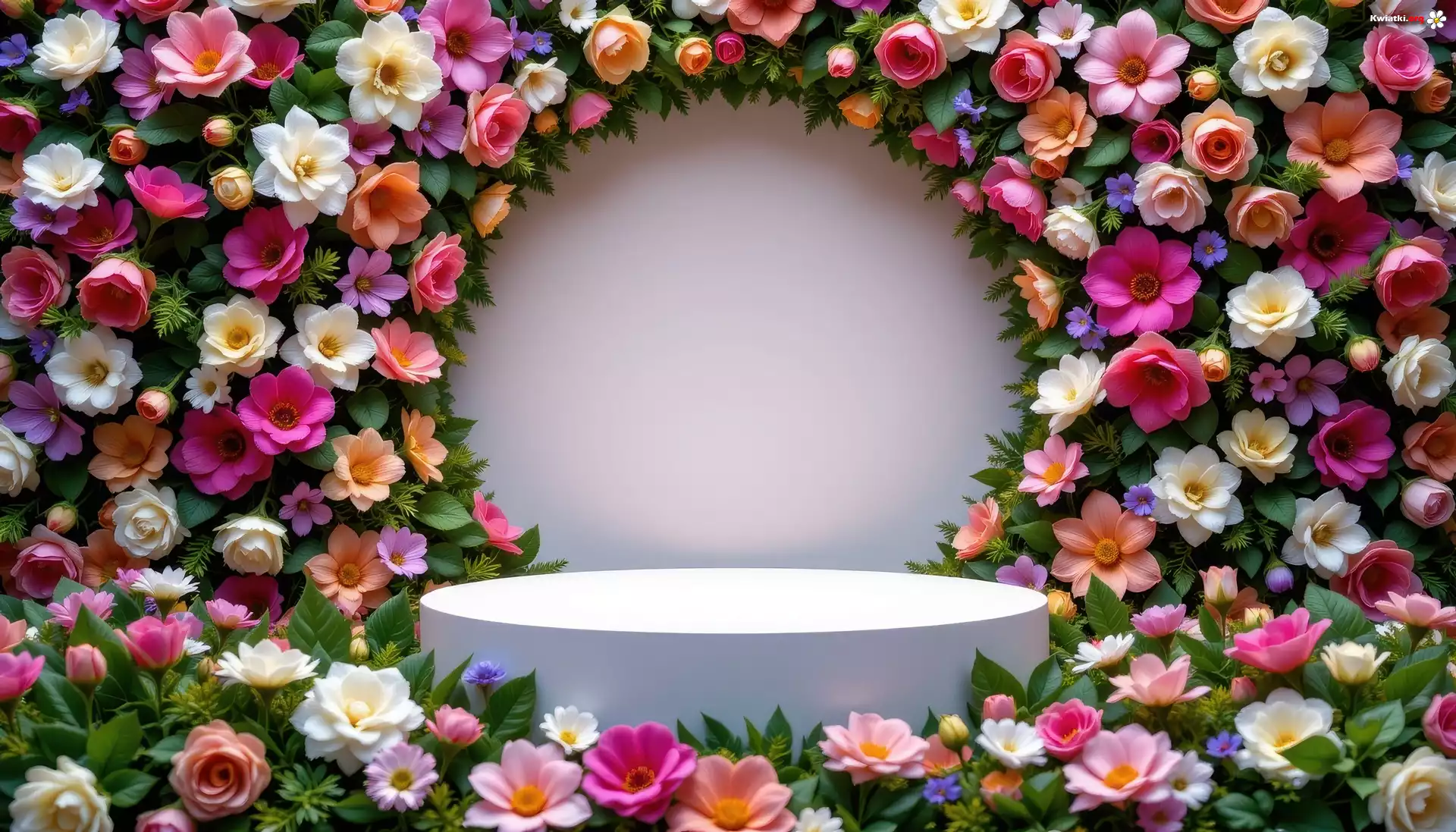 Kwiaty, Kolorowe, Białe, Podium, Grafika AI - Zdjęcia