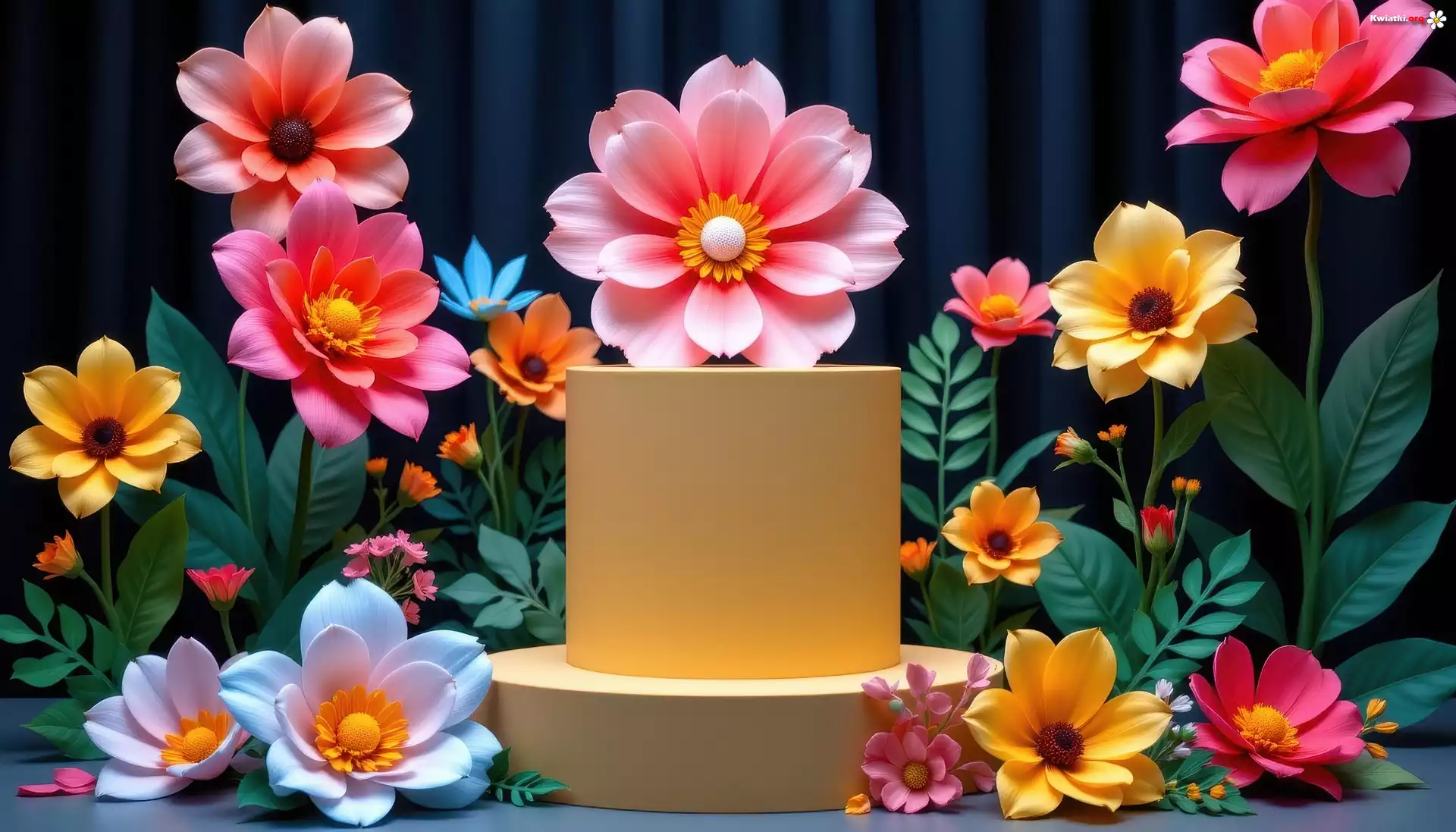 Kolorowe, Papierowe, Kwiaty, Podium, Grafika AI - Zdjęcia