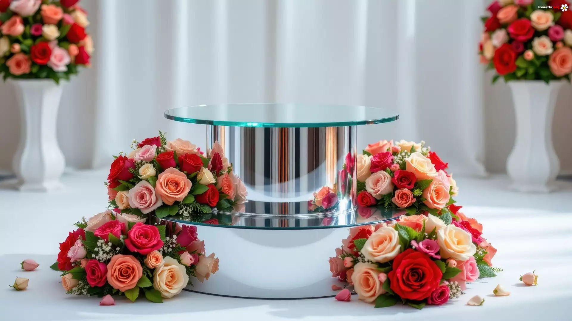 Szklane, Podium, Bukiety, Kolorowe, Róże - Zdjęcia
